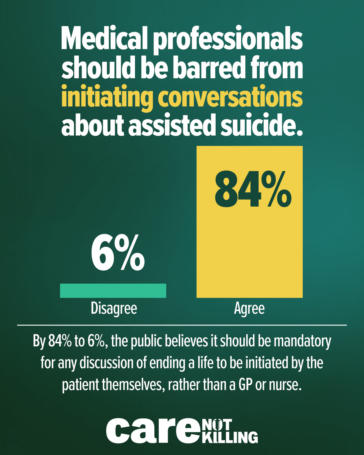 By 84% to just 6%, the public believes it should be mandatory for any discussion of ending a life to be initiated by the patient themselves, rather than a GP or nurse.
